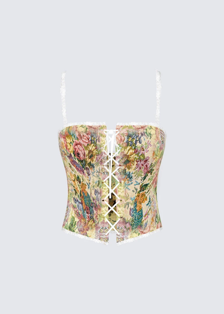 How do you say “queen” without actually saying it? Show up in a corset with allover embroidery that will make their jaws drop as they sink to their knees ????