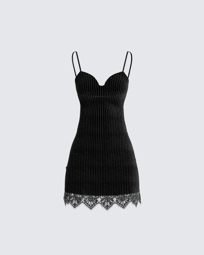 FINESSE Dresses Yira Black Lace Trimmed Dress