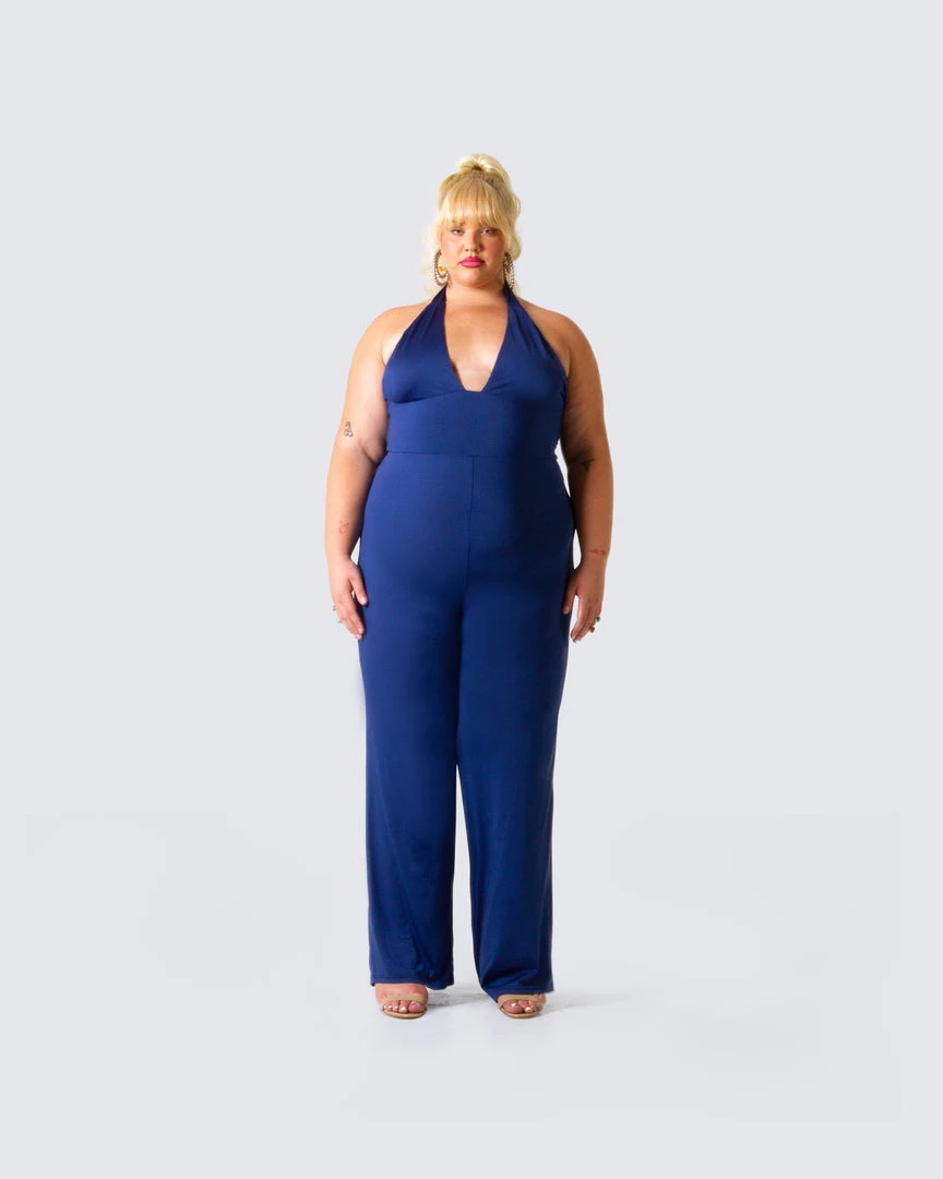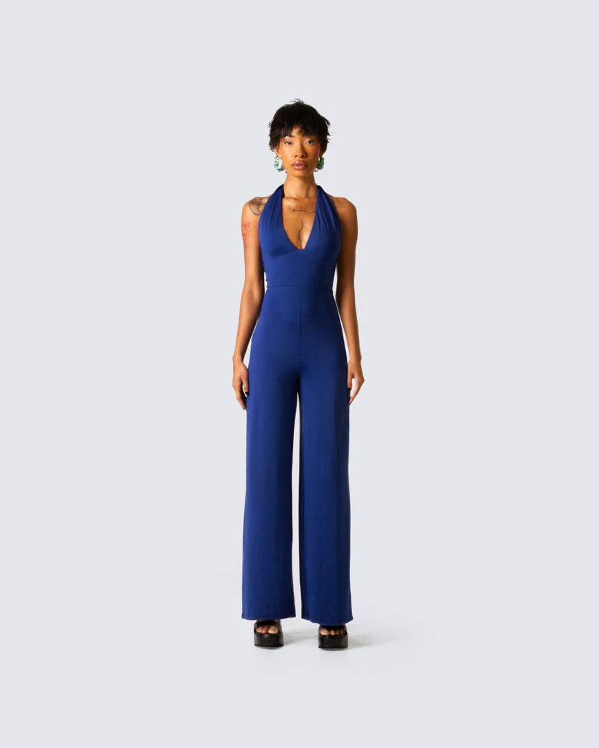 FINESSE Jumpsuits & Rompers Valentina Blue Halter Jumpsuit