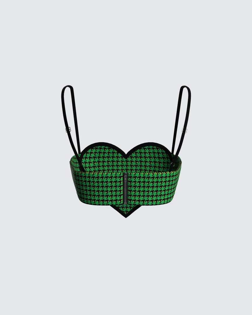 FINESSE Misty Green Houndstooth Top Tops