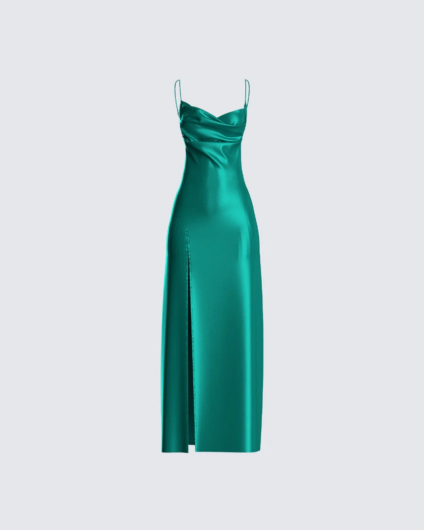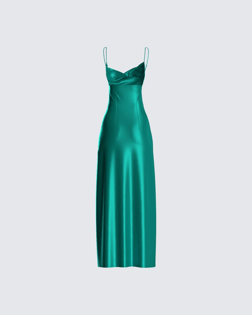 FINESSE Piper Emerald Satin Maxi Dress