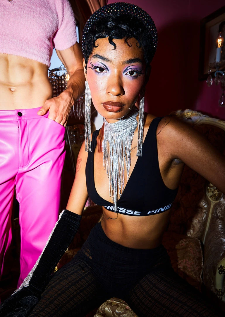 Back to the basics, but this time with a twist! Say you’re a FINESSER without speaking a word in our DOM Street Bralette…a classic black bra top with a little extra something ????