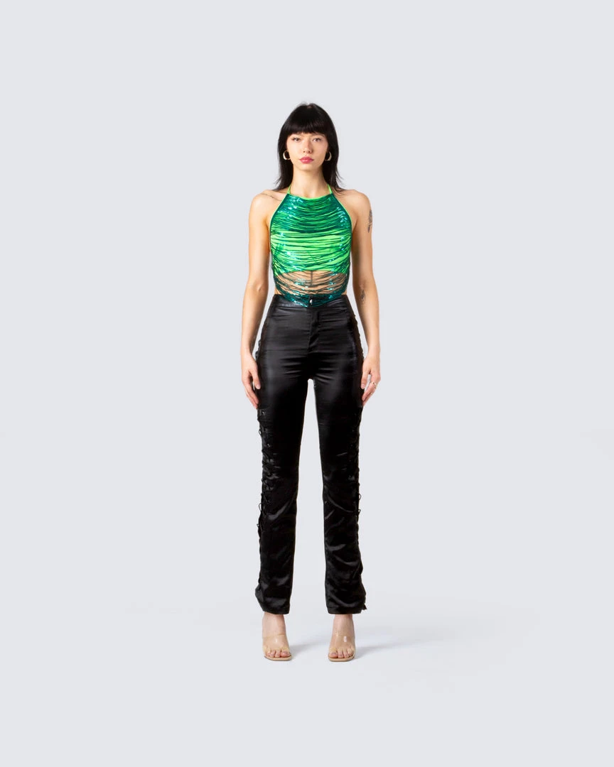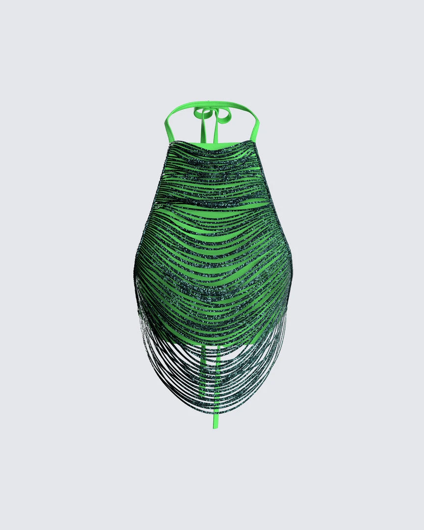 FINESSE Tops Evelyn Green Sequin Top