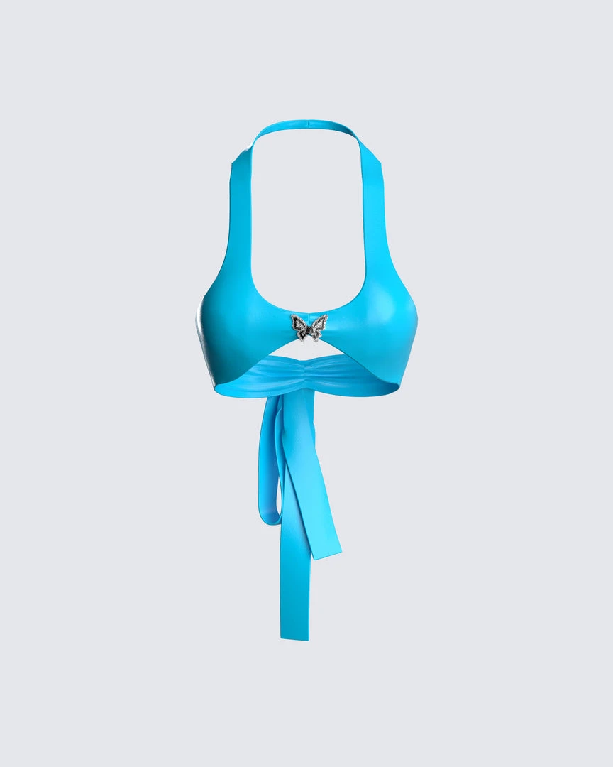 FINESSE Tops Paola Metallic Jersey Butterfly Trim Halter Top
